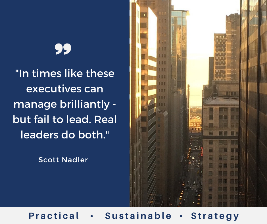 In times like these executives can manage brilliantly – but fail to lead. Real leaders do both.
